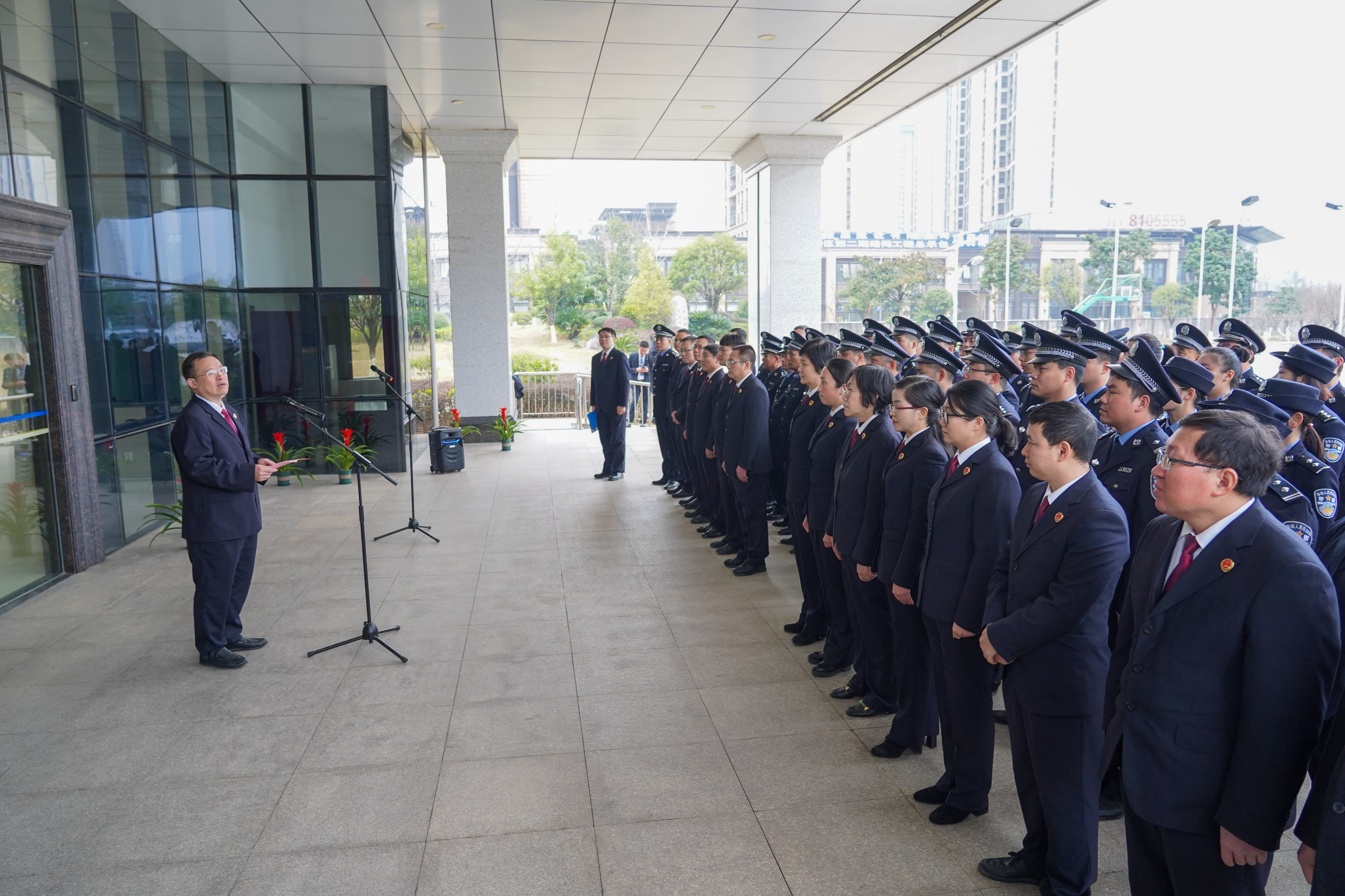 市院中层领导、部分基层院政治部主任及两级院全体司法警察出席活动。仪式结束后,全体司法警察在训练基地进行训练考核。