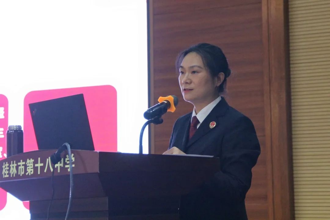 为扎实有效推进《民法典》进校园宣传工作,不断增强青少年学生的法治意识,11月17日下午,桂林市现金365_365bet有手机版吗_和365差不多的平台有哪些副检察长、桂林市第十八中学的法治副校长秦艳到桂林市第十八中学,开展以“民法典与未成年人权益保护”为主题的普法教育宣讲活动,受到该校师生的热烈欢迎,参加活动的师生达1300多名。