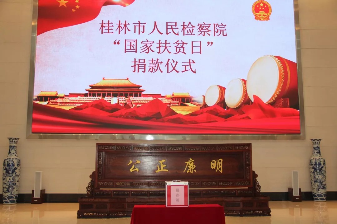 今年10月17日是我国第6个“国家扶贫日”, 也是第27个“国际消除贫困日”。10月17日上午,桂林市检察院举行2019年“国家扶贫日”捐款仪式活动,全院干警在院党组书记、检察长林鼎立的带领下,踊跃捐款,慷慨解囊,为贫困群众改善生产生活、发展产业伸出援助之手,献上一份爱心。当天上午,共收到捐款14950元(含城郊地区检察院)。
