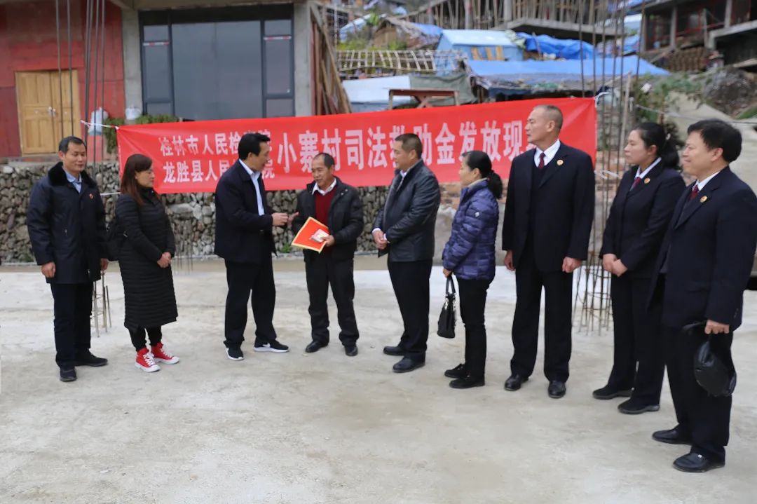 2019年11月29日,桂林市检察院与龙胜县检察院向小寨村56户符合国家司法救助条件的家庭发放司法救助金34.5万元。由于成效明显,该案被评为“广西检察机关司法救助服务脱贫攻坚优秀案例”。