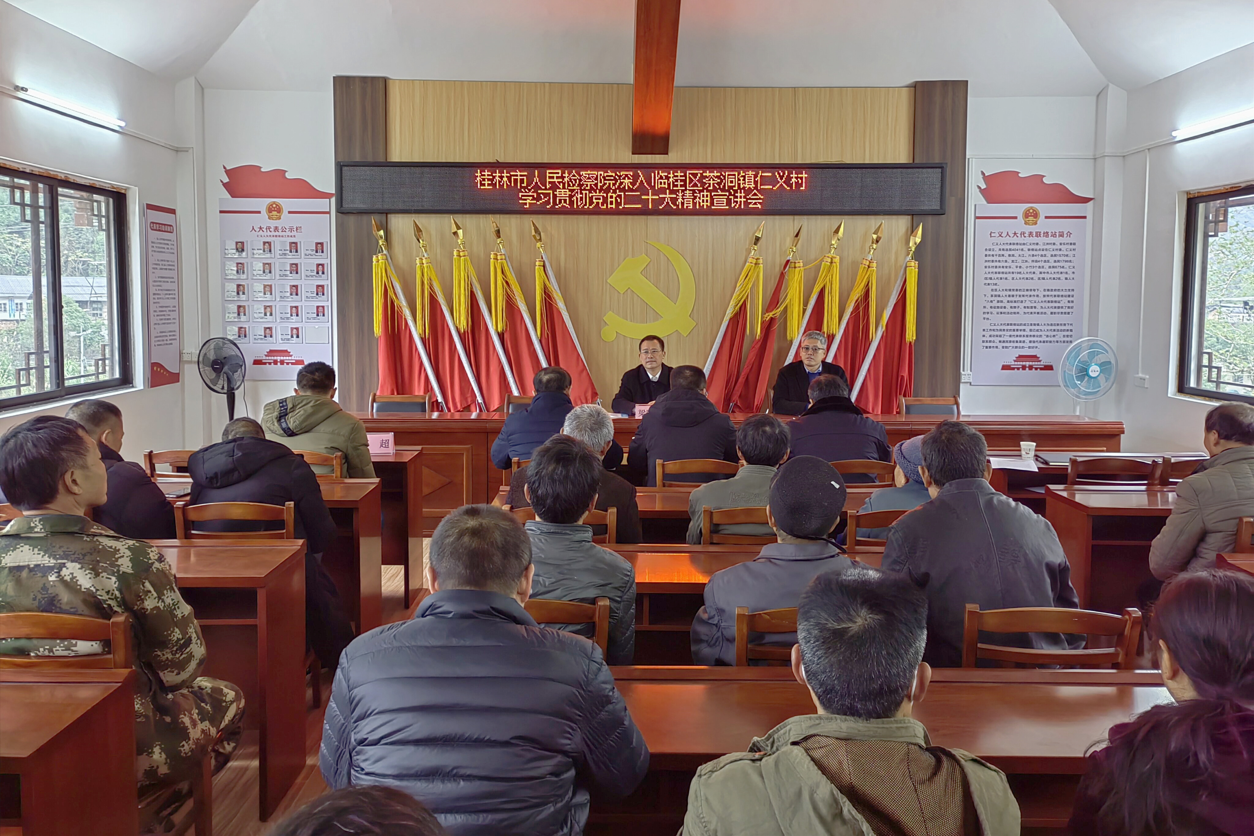 为推动学习贯彻党的二十大精神在基层走深走实,近日,桂林市现金365_365bet有手机版吗_和365差不多的平台有哪些党组书记、检察长梁贻勇到结对帮扶的茶洞镇仁义村宣讲党的二十大精神。桂林市现金365_365bet有手机版吗_和365差不多的平台有哪些党组成员、政治部主任彭武林,临桂区现金365_365bet有手机版吗_和365差不多的平台有哪些党组书记、检察长秦奕明,茶洞镇党委书记朱志桂,仁义村驻村工作队、党员、群众代表等60余人参加。