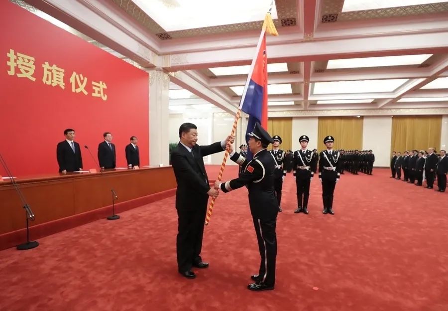 8月26日,中国人民警察警旗授旗仪式在人民大会堂举行。中共中央总书记、国家主席、中央军委主席习近平向中国人民警察队伍授旗并致训词。