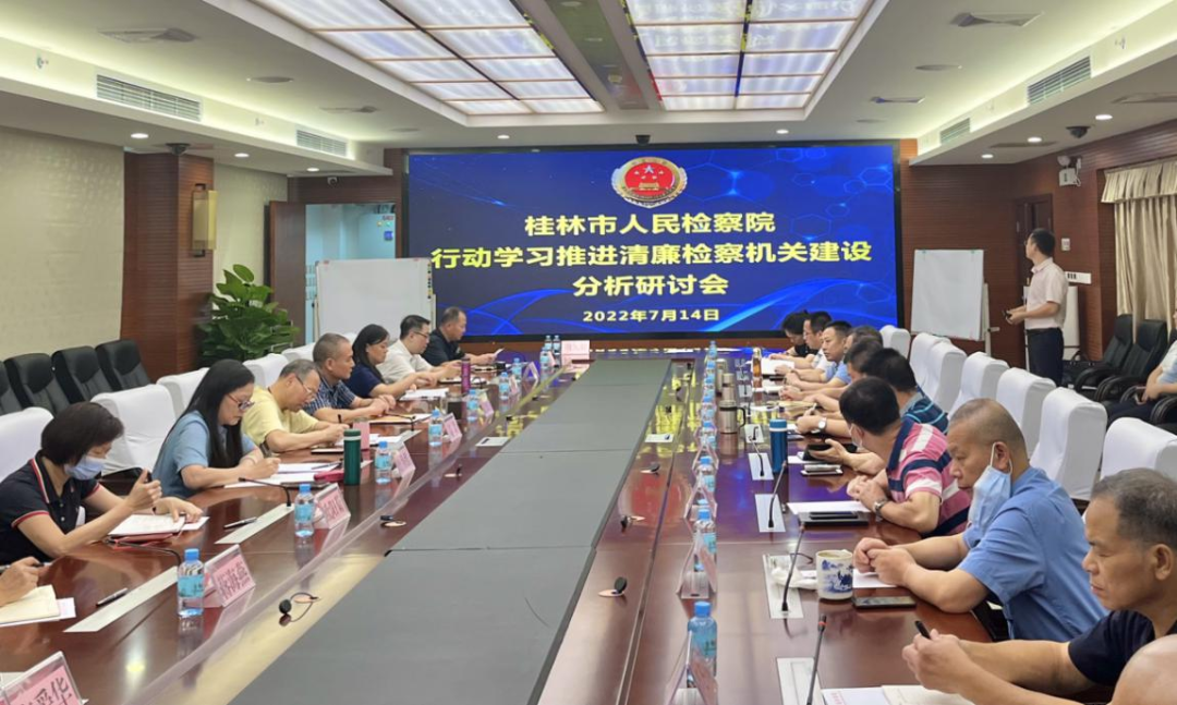 近日,桂林市现金365_365bet有手机版吗_和365差不多的平台有哪些组织召开学习贯彻党的十九届六中全会精神暨自治区第十二次党代会精神研讨会,研讨会以行动学习的方式进行,主题为“推进清廉检察机关建设”。中共桂林市委党校经济学教研室主任、副教授周久贺受邀作为本次研讨会的行动学习促进师。市检察院处、团级领导干部参加研讨会。